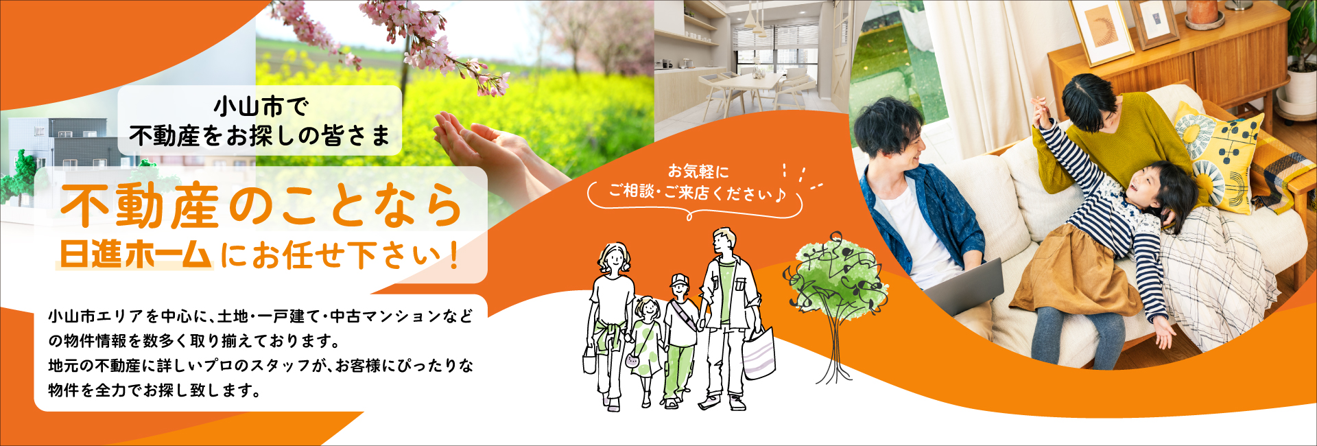 小山市エリアの地域事情に精通したスタッフが、物件選びだけでなく、「住んでからの安心」 までしっかりサポート。