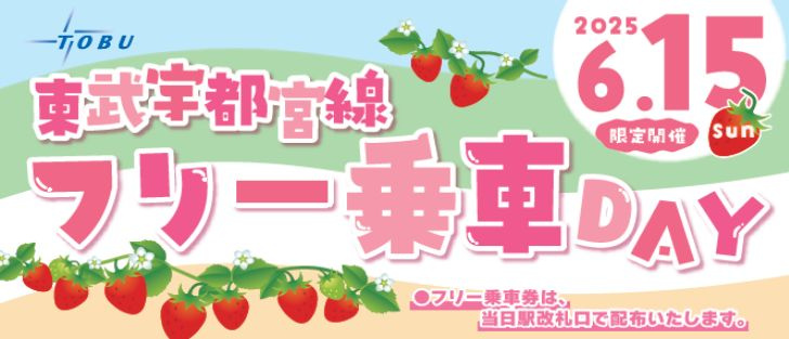 6月15日(日)は、東武宇都宮線沿線で「フリー乗車DAY」が実施され、指定駅間が1日乗り放題に!